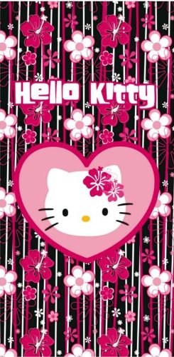 HELLO KITTY - Drap de plage ou serviette de bain- noir/ fuschia
