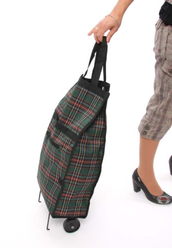 Chariot de courses cabas à roulettes trolley, pliable, 35 litres, vert écossais