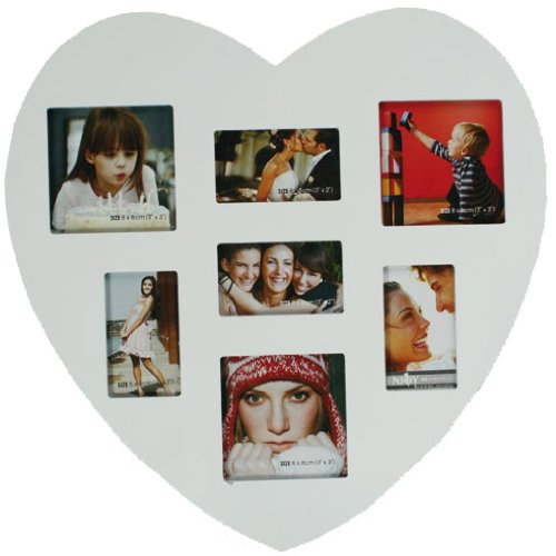 Cadre Photo Coeur - Pour 7 photo - A accrocher au mur - En bois - Blanc Great Deals, Shop Online, Read