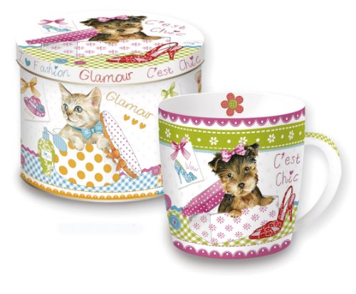 Nuova R2S 217CEST Coffret 1 Mug Boîte Metal Décor Chien c'est Chic Porcelaine