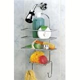 Serviteur de douche porte accessoires- chroméServiteur de douche RAYEN en métal avec crochet giratoire. 3 étagère et 1 porte-savon + 2 crochets pour accrocher gants et fleurs de douche. Couleur : Chromé. longueur : 48.5 cm. Largeur : 25 cm. Profondeur : 10 cm.