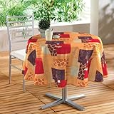 | ✚✚✚ Nappe ronde imprimée Noa Orange - Toile cirée La nappe ronde imprimée Noa orange est en toile cirée (88% PVC, 10% polypropulène et 2% polyester). Finition biais. Taille 160 cm de diamètre. Couleur à dominante orange/rouge.